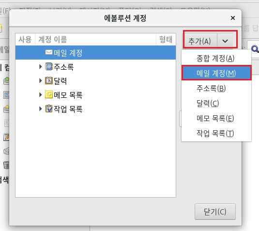 evolution 에서 계정 추가 - 2