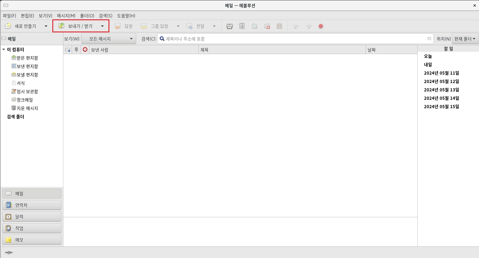 클라이언트의 evolution에서는 메일을