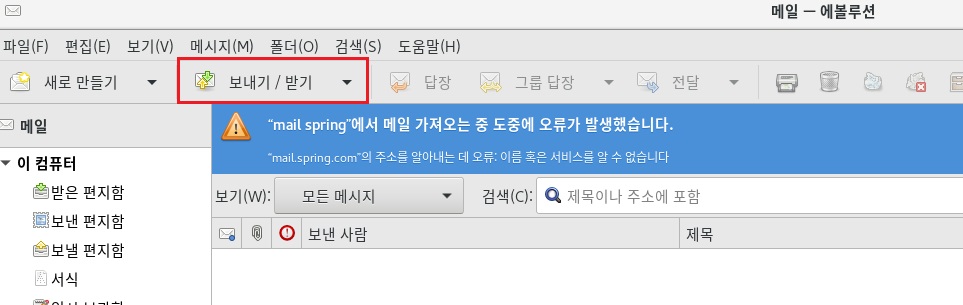 메일서버로부터 가져올수 없었다.