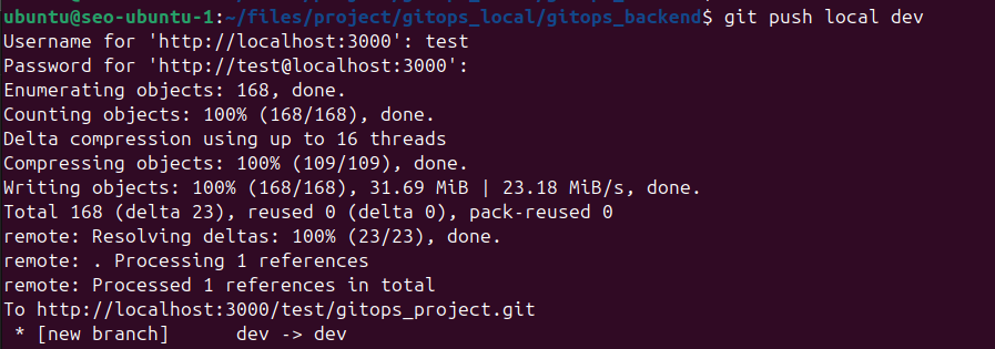 먼저 로컬 리포지토리를 local에 설치되어 있는 gitea에도