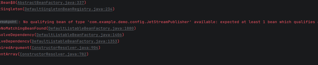 JetStreamPublisher 타입의 빈을 찾지 못하겠다고 한다.