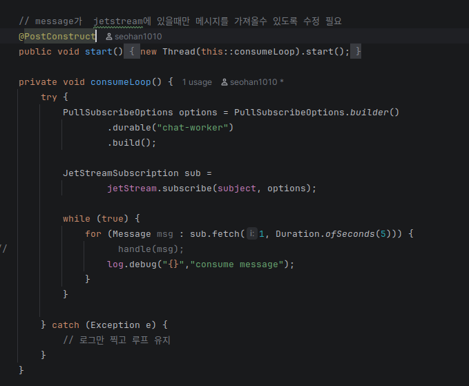 jetstream으로부터 메시지를 가져와서 openai에 요청을 보내는 로직