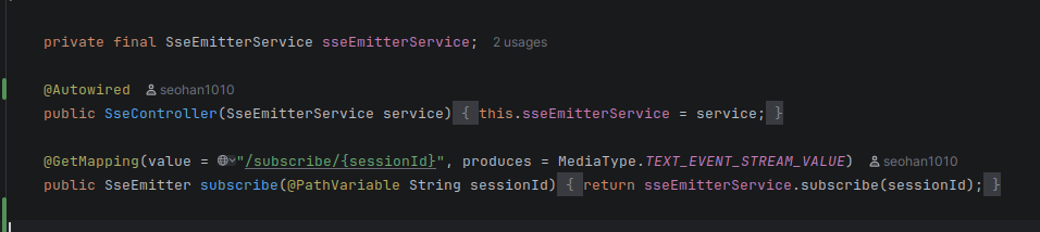 SseController에 있는 의존성 bean은 생성되지 않았나 보다