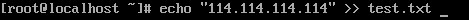 echo명령어의 출력 데이터를 test.txt 파일에 리디렉션하는