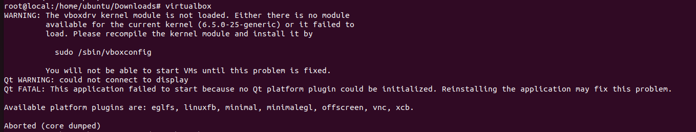 ubuntu 22.04.4에서 virtual box를 설치하고 실행하려는데 오류가 발생 했다.